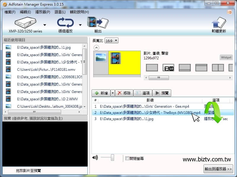 小技巧2:若要調整播放順序,直接在列表中的檔案進行上下拖移,可調整先後順序