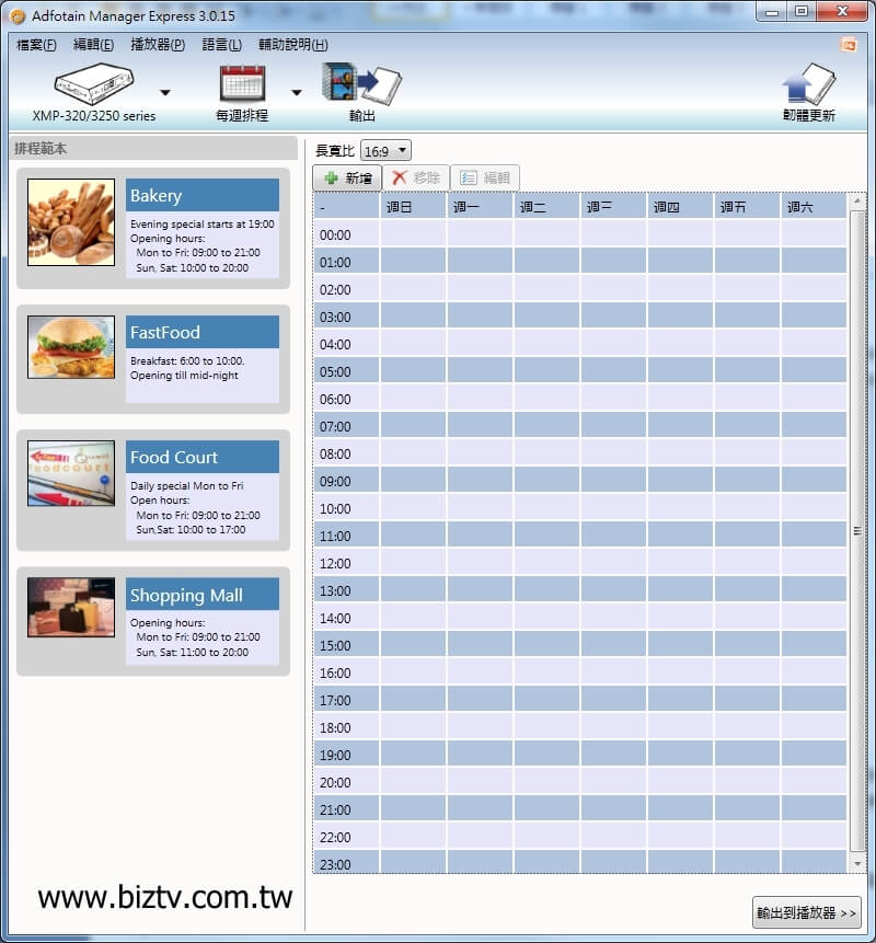 首先,請把循環播放當成一個單元,在這個小單元裡所做的事情,只是在某時間區段裡進行反覆的輪播。而週期排程作法,是將這些單元被進階的定義在不同時間區段範圍。每個單元視同任務,擴展出週日至周六的各個時間區塊中要執行哪些任務單元