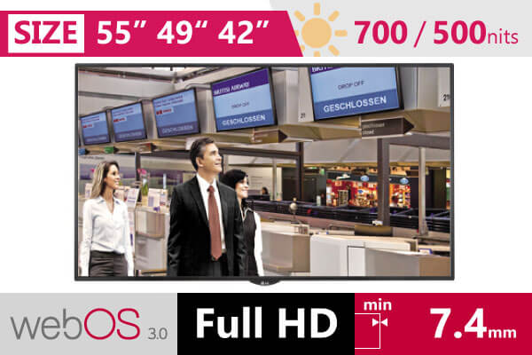 時尚造型的商用顯示器,擺脫直下式LED的厚框受限。LG品質決勝整體美觀,外觀質感更棒厚度更精省,視覺更加舒適,容易被放置在狹扁的有限空間範圍。