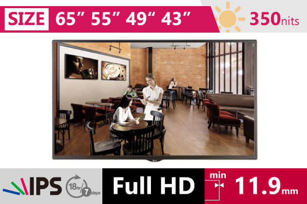 使用 LG SE3KB 系列商用顯示器,簡易套用促銷內容或銷售訊息管理系統,滿足您的廣泛的商務顯示需求。纖薄設計可有效運用空間,多種螢幕尺寸滿足您所有的需求。
