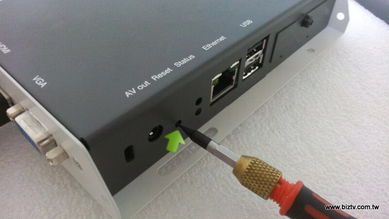 ▲先拔除播放器之電源,在不通電的情況以尖銳物壓住播放器上之Reset鍵
