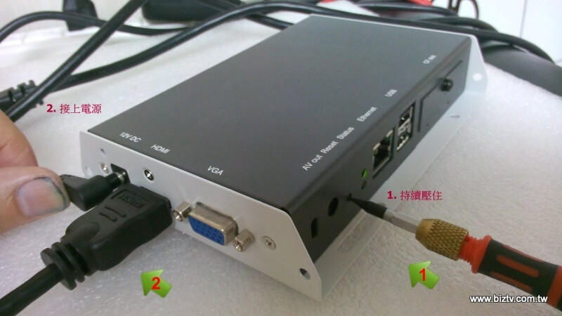 ▲持續壓住Reset進行接上電源通電,依然保持壓住約15秒以上