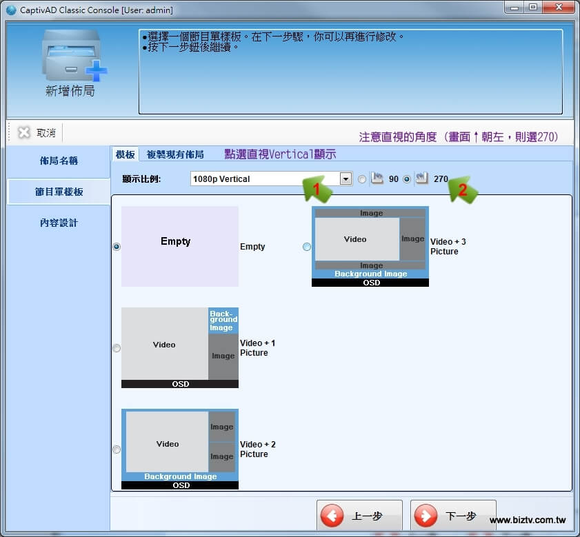 常見的適合例子很多,包含:某長官拜訪需要臨時性更換已存在的歡迎佈局;火災緊急逃難告知,透過插播佈局的逃脫路線;或者更改限定當下的其他佈局做即時插播。即時插播的過程很簡單,原則流程不變僅簡化為一個介面。但提醒整體功能依然屬於插播作用,您需要先準備好佈局才能選擇給插播使用。圖片示範如下: