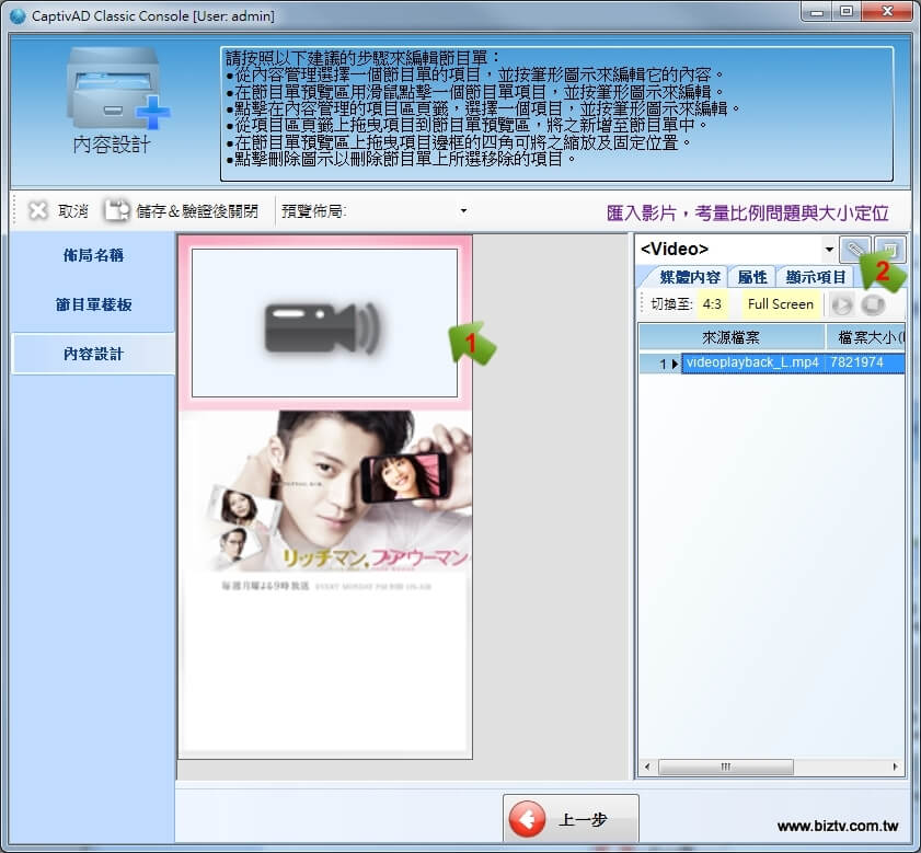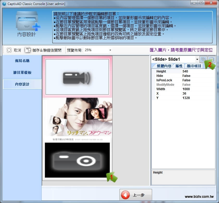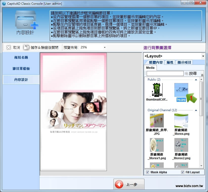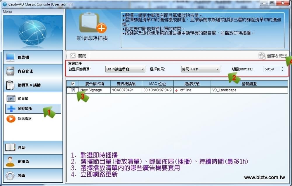 ▲即時插播能簡化對『佈局文字修改』以及『廣告機內容更新』之動作