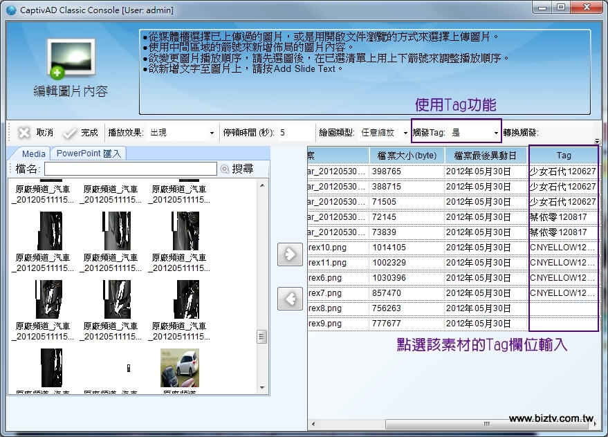 ▲您必須將影片區域的素材打上Tag,好讓圖片區可以對應主人