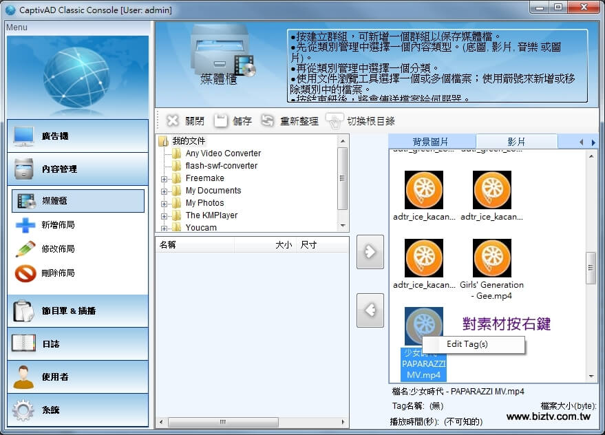 對於CaptivAD的管理介面,我們推出了完整模式的CaptivAD Console與簡易模式的CaptivAD EZ Console共兩種登入軟體提供選擇。而EZ Console與Console的介面最大差異分別如下