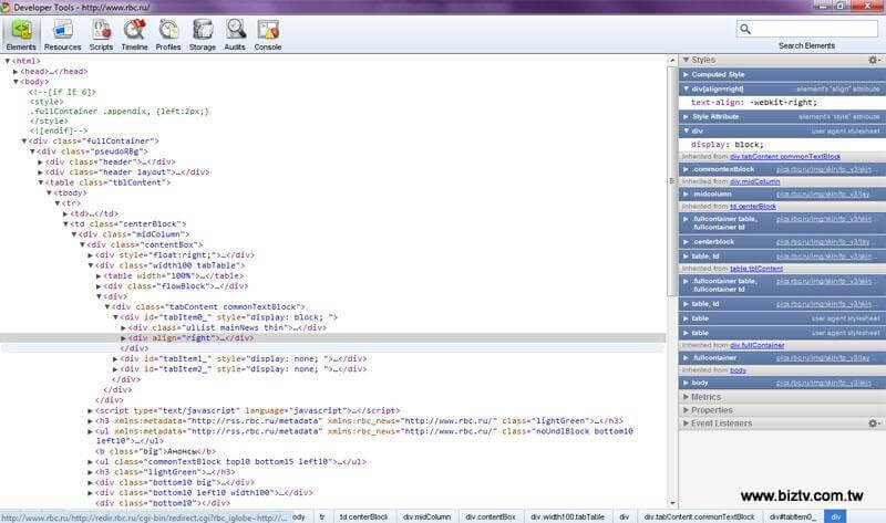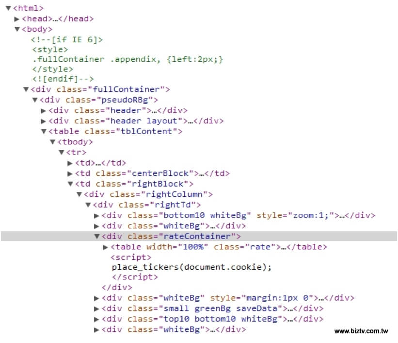 ▲可利用Google Chrome遊覽器的開發人員工具,來解析來源網頁框架的路徑