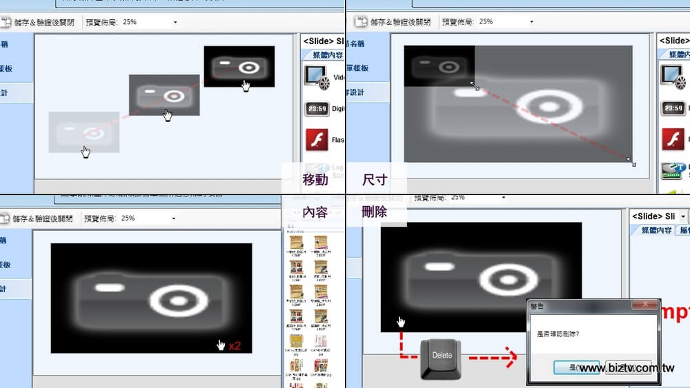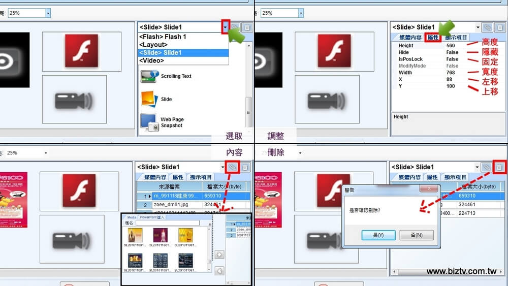 ▲這裡的刪除只有效於佈局單位,並不影響媒體櫃之素材遺失