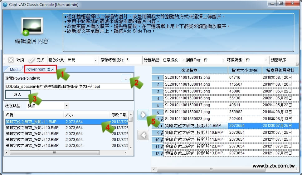 ▲圖片區能支援投影片匯入,此動作會把PPT轉成BMP上傳到媒體櫃