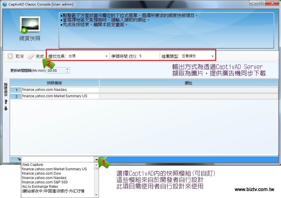▲設定連結網址與參數,廣告機將依定義的更新時間從伺服器自動下載更新