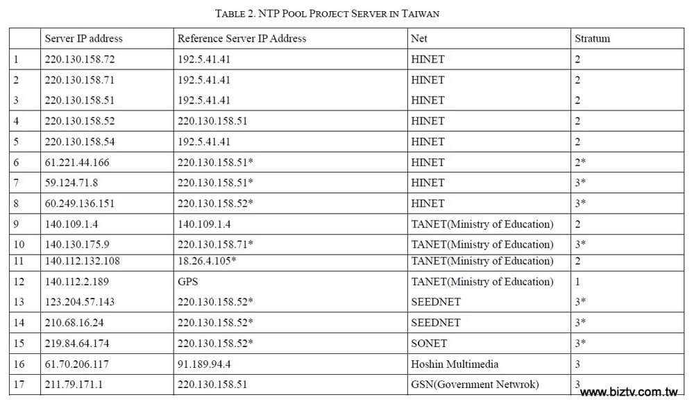 ▲台灣常見的NTP主機IP列表,可自行輸入