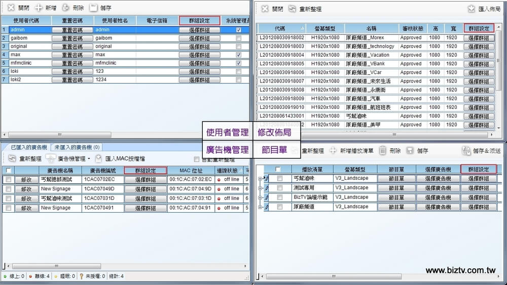 - 當您有很多個人要一起管理一台伺服器與多台廣告機時。
