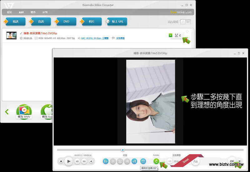 ▲透過畫面提示步驟,將影片旋轉到理想的角度
