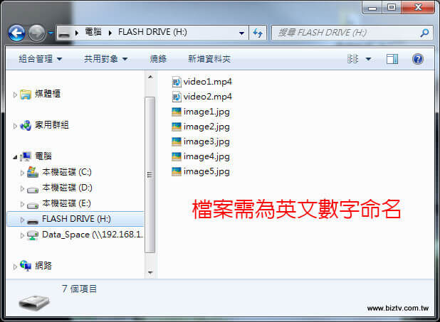 - 媒體檔案需以英文與數字命名,不可出現中文或特殊語言與符號。